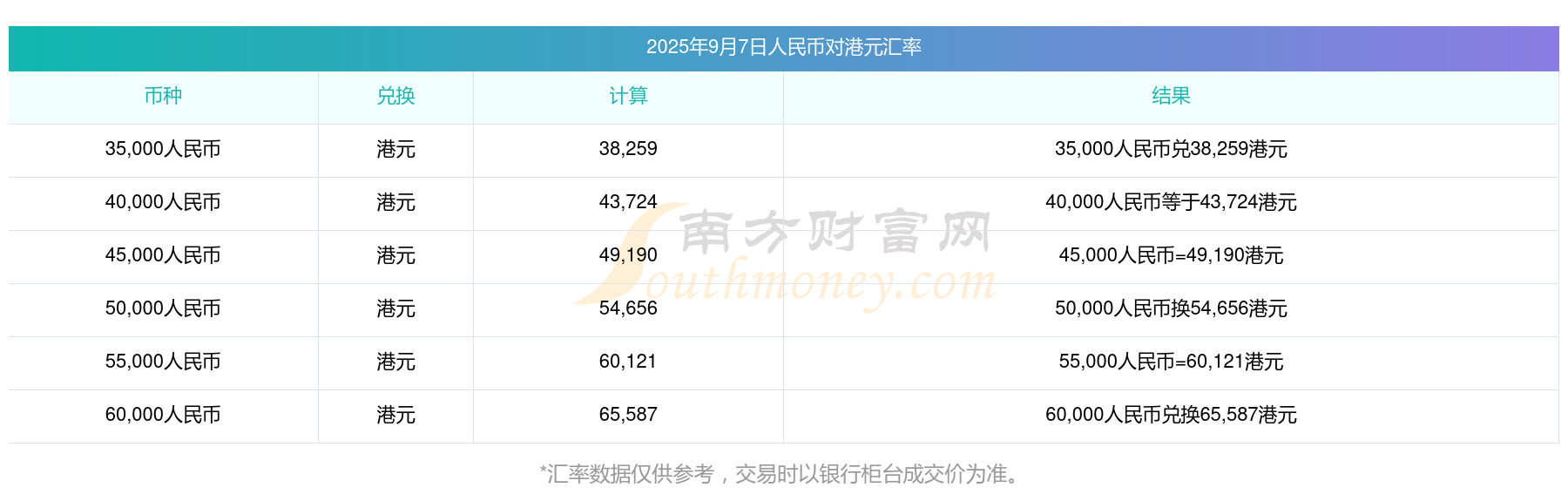 今天的匯率多少? 人民幣轉(zhuǎn)換港元匯率中間價是多少? 9月7日