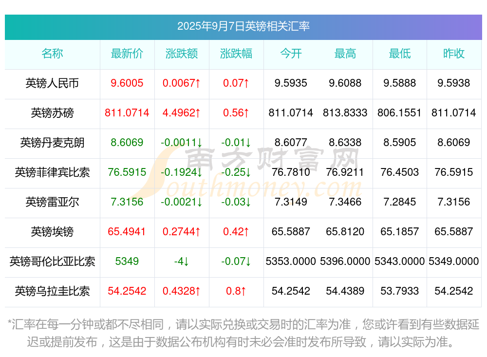 今日匯率調(diào)整_1030英鎊對加幣匯率查詢2025年9月7日