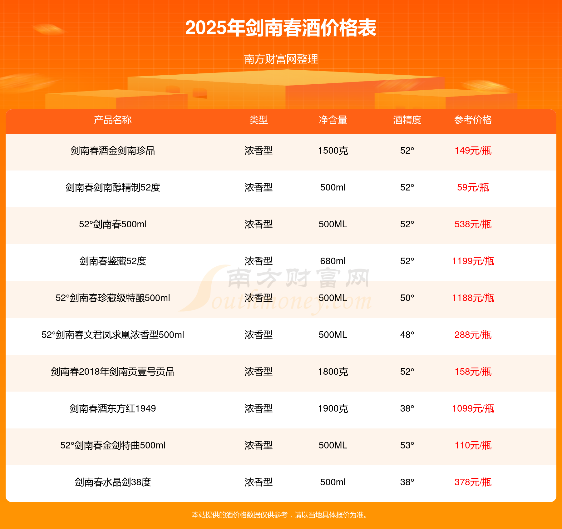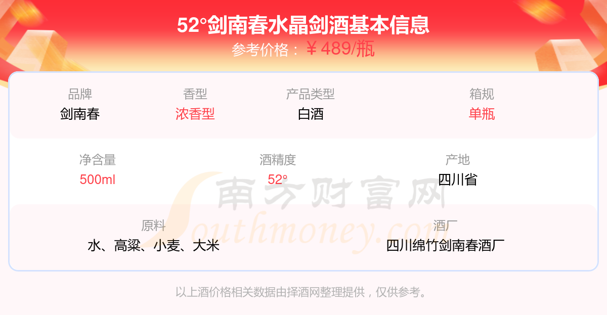52°剑南春水晶剑酒价格多少一瓶2025价格一览表