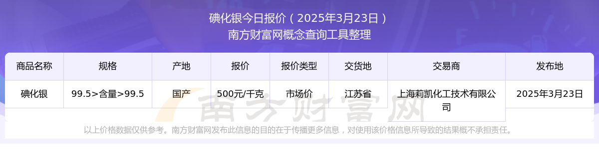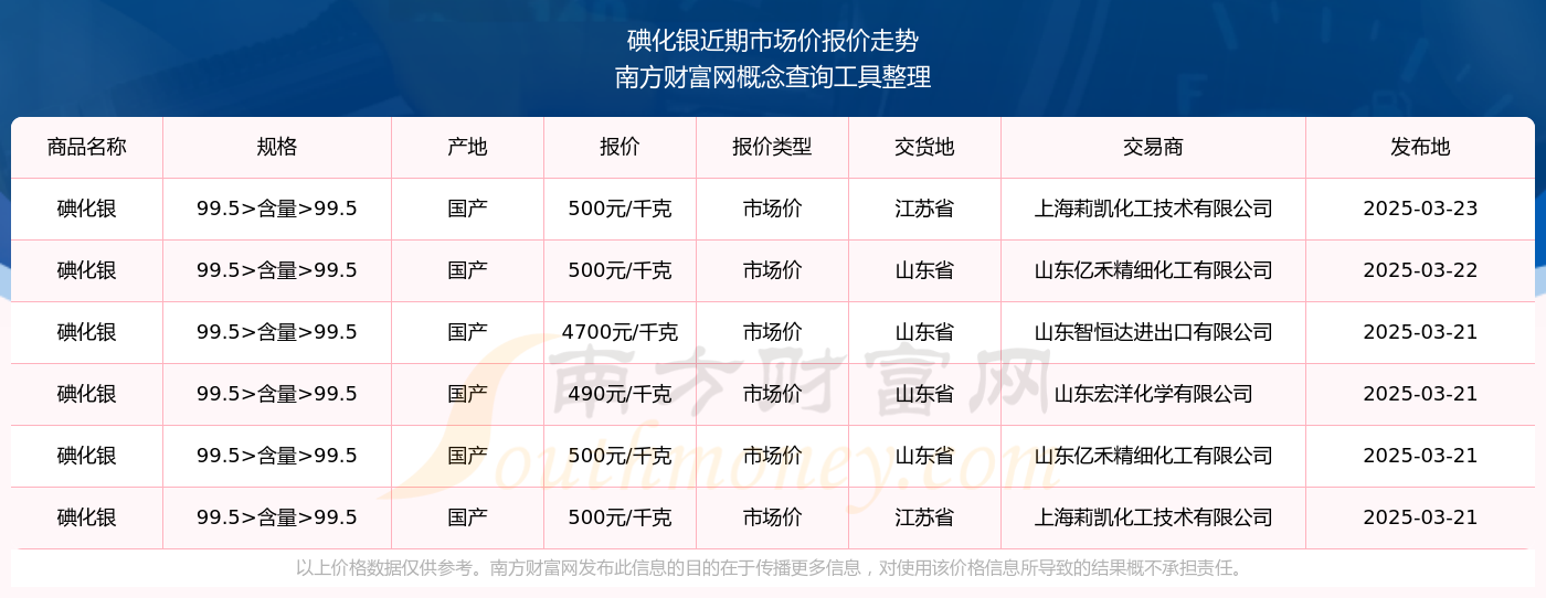 2025年3月23日碘化銀市場價報價動態及近期市場價報價走勢