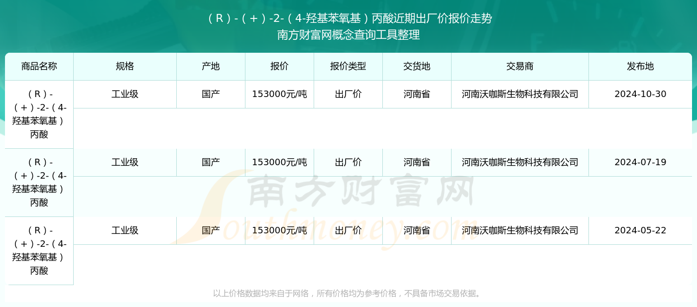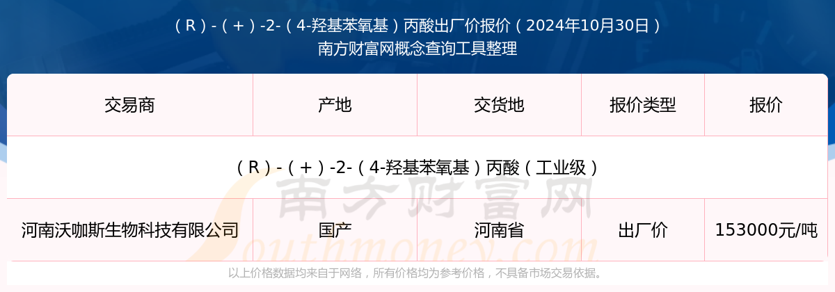 2024年10月30日(R)-(+)-2-(4-羟基苯氧基)丙酸出厂价报价查询
